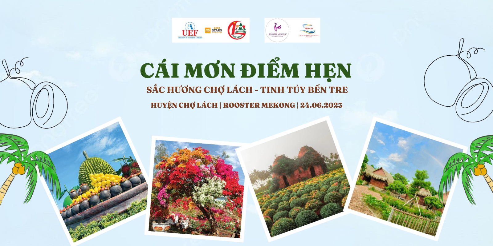 “Cái Mơn điểm hẹn: Sắc hương Chợ Lách - Tinh túy Bến Tre” là một sự kiện được kết nối giữa Trường Đại học kinh tế - tài chính TP.Hồ Chí Minh, phòng văn hóa Huyện Chợ Lách và khu nghỉ dưỡng Rooster Mekong nhằm giao lưu văn hóa và quảng bá nét đẹp, đặc sản xứ Cái Mơn, liên kết và phát triển du lịch tại huyện Chợ Lách nói chung và thực hiện đề án Làng Văn Hóa Du Lịch nói riêng.