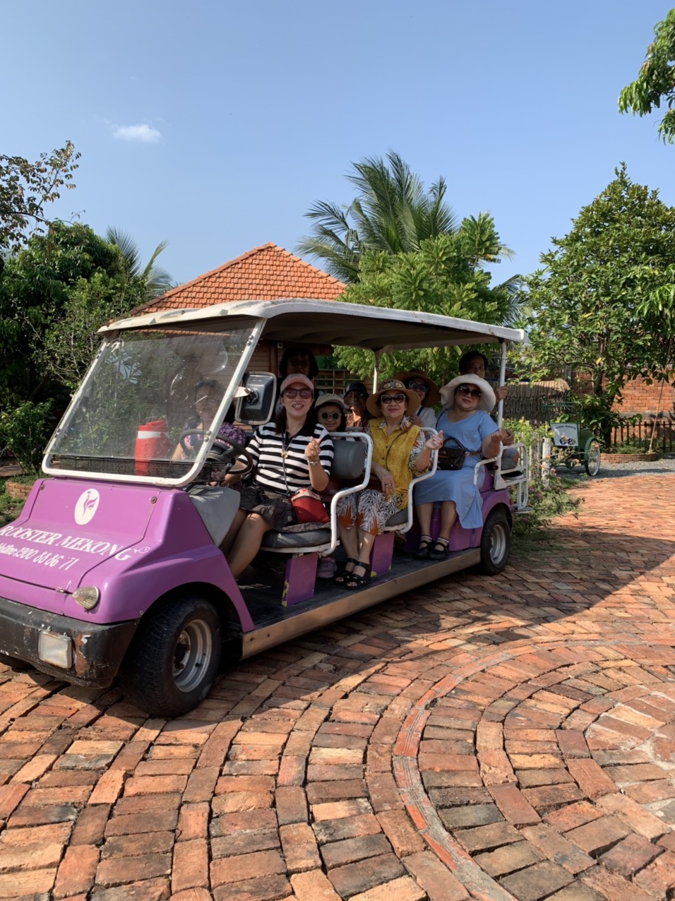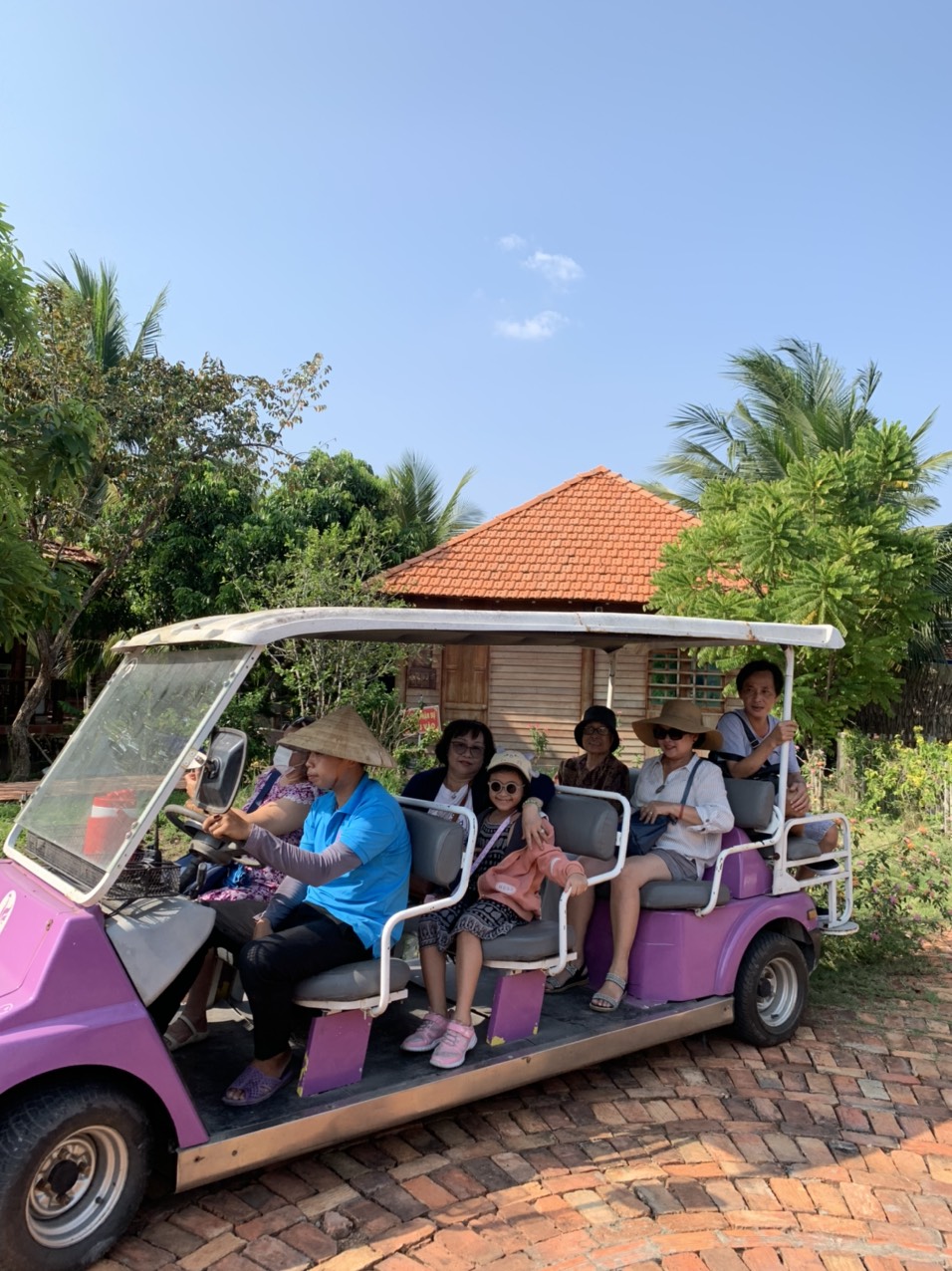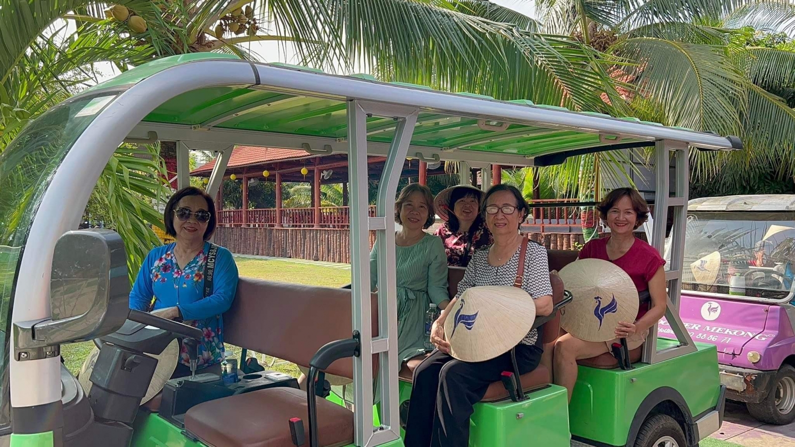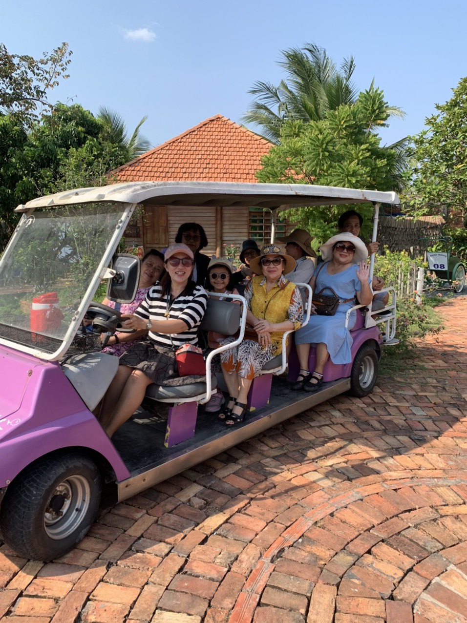 8:00 - Đi xe điện tham quan đường làng đến một số địa danh nổi tiếng tại huyện (Nhà thờ Cái Mơn, Chùa Ước, làng cây giống, hoa kiểng... hoặc vườn trái cây theo mùa (chưa bao gồm vé vào vườn)