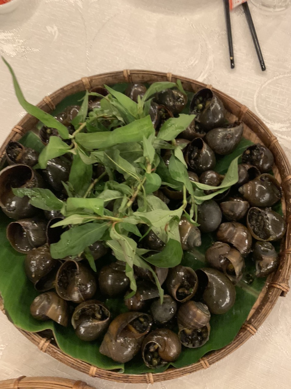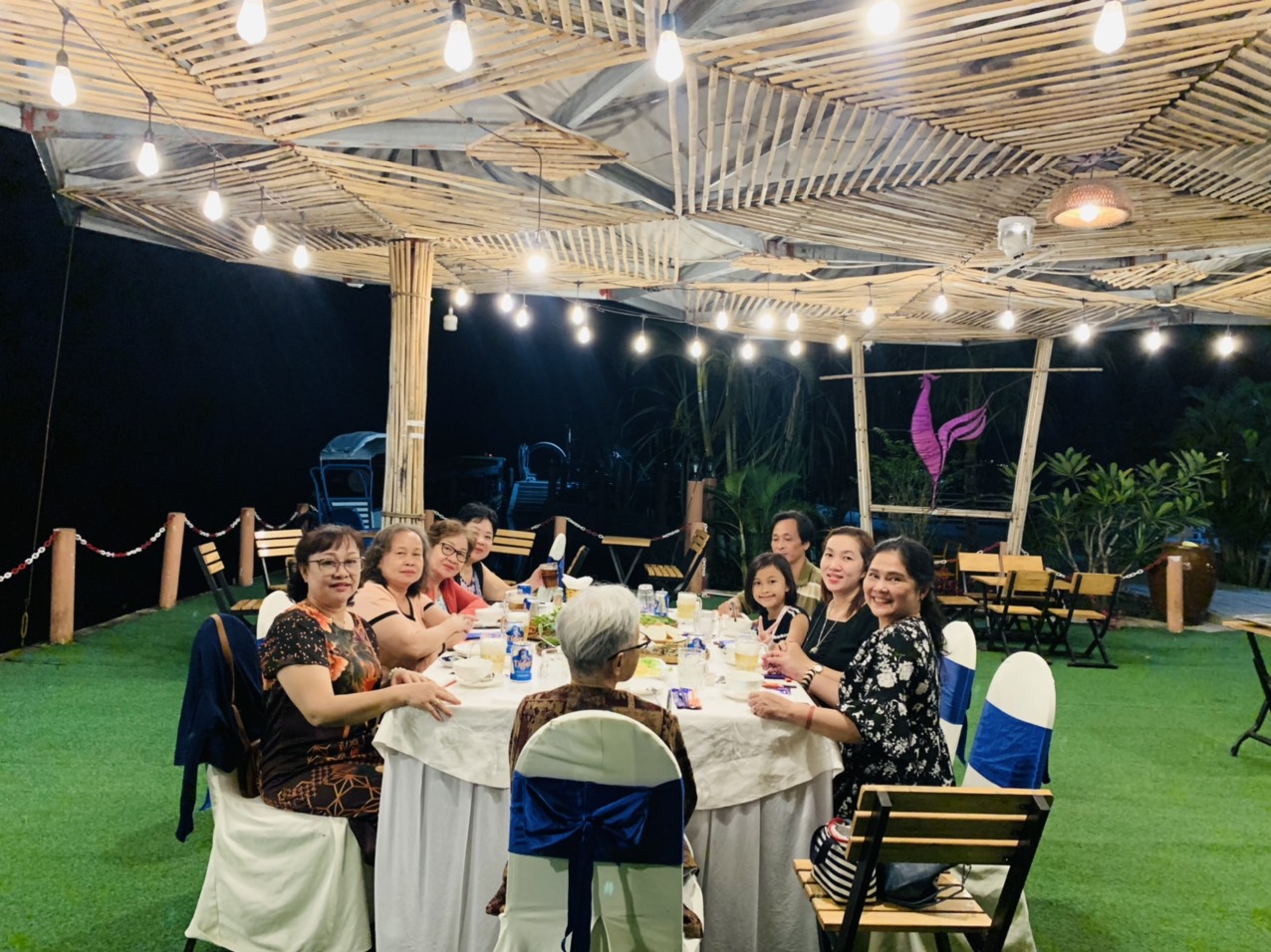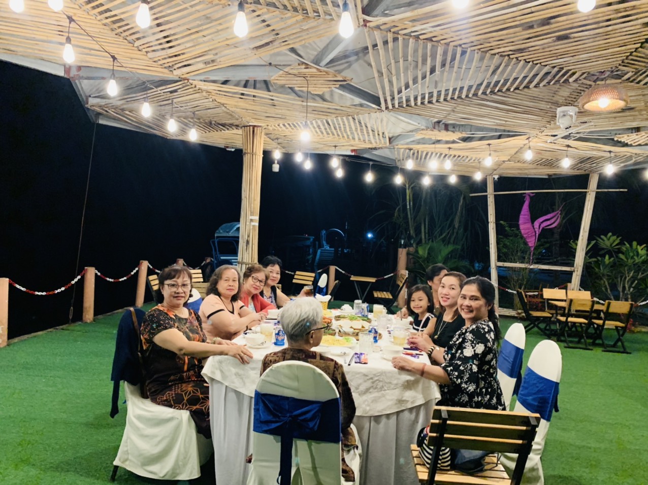 18:00 - BBQ ngoài trời ven sông gồm: Gỏi bò hoa thủy liễu, Ốc bươu nướng tiêu xanh, Tôm càng sông nướng mọi/ nướng muối ớt, Đậu bắp, cà tím, khoai lang, Cơm chiên tỏi trứng, Lẩu gà lúa hầm sả hoặc lẩu cá sông